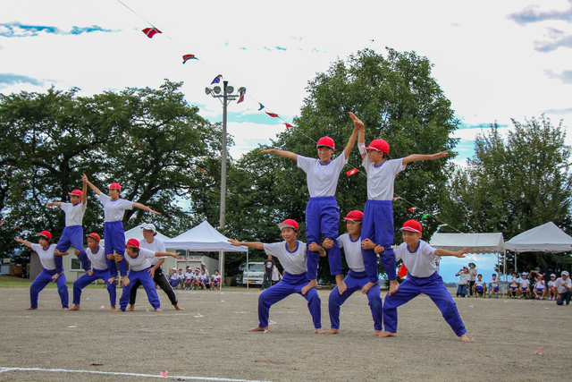 公開日 2018年09月28日 最終更新日2018年9月28日 9月16日、22日に市内の小学校6校で運動会が行われました。科野小学校では1~3年生の「ダンシング玉入れ」や、全校児童で懸命に大玉を運ぶ「大玉ころがし」などの競技で盛り上がりを見せていました。 4~6年生の組体操「科野の四季」では紅白帽子を地域の実りに見立て、決めポーズのまま収穫するなどの工夫があり、競技終了後には「頑張った」「よくできたぞ」などの歓声が会場から沸き上がりました。(写真は科野小学校)
