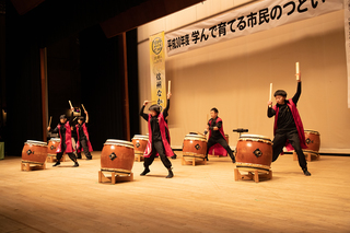 これは生涯学習と青少年の健全育成を推進するために開催されたもので、会場には市内で活躍している団体やサークルの作品が展示され、豊田故郷太鼓が披露されたほか「明るい家庭・地域を築くための作文」表彰と発表を実施しました。