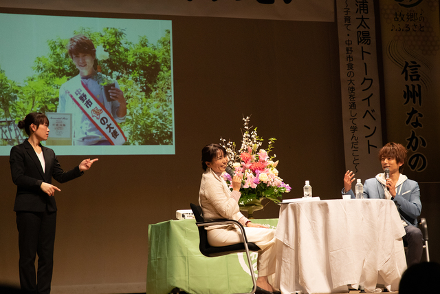 またトークイベントでは”中野市食の大使”杉浦太陽さんが登場。質問コーナーでは4児のパパでもある杉浦さんに自らの子育て体験についてユーモアを交えながらお答えいただくなど、会場は大いに盛り上がりました。